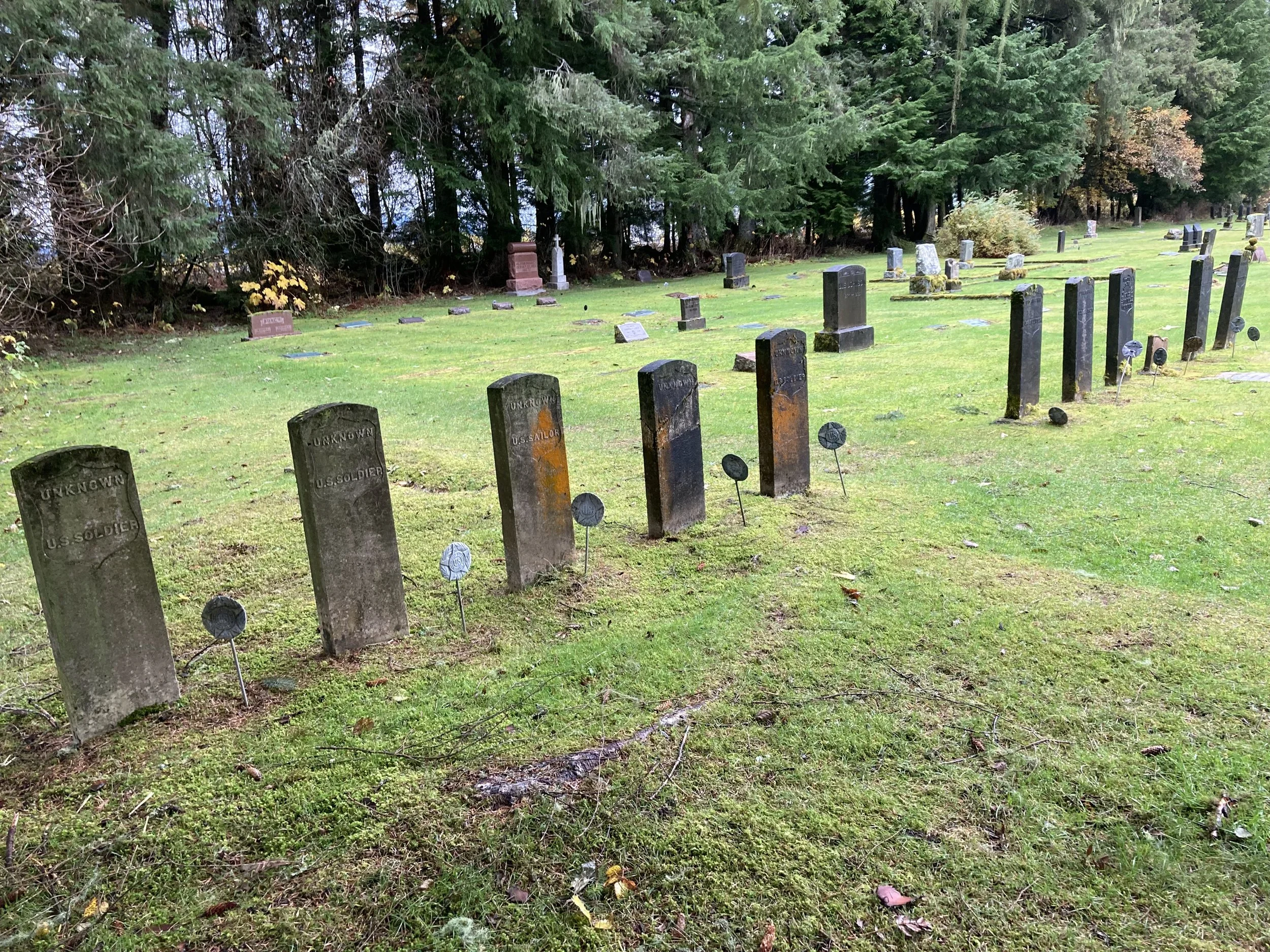 “All sources of information have been drained in the effort to ascertain names and branches of service of the deceased, and we feel the details, meagre though they may be found, are all that are now or will become available. Under such conditions we feel that ‘Unknown’ headstones should mark certain of these graves as they do in large eastern cemeteries. May we not ask that you use your best endeavors to have the proper department of the Government manufacture, engrave and forward headstones with bases which will permanently mark the graves of the Soldier and Sailor dead of Wrangell.”